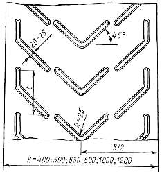 Основными размерами настила (см. рис. 13) являются ширина В и высота h бортов, если они имеются. По ГОСТ 22281—76 настилы изготовляют с номинальной шириной 400, 500, 650, 800, 1000, 1200, 1400 и 1600 мм и высотой борта 80. 100, 125, 160, 200, 250, 315, 355, 400, 450 и 500 мм.