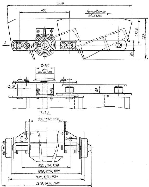 Основные параметры конвейера: ширина настила 0,8 — 1 м; скорость движения до 1,7 м/с, длина до 250 м при одном гусеничном приводе.