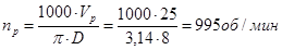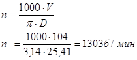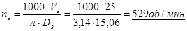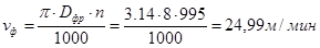 Скорость резания: V = 24,99 м/мин.