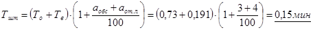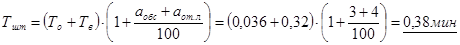 % времени на технологическое обслуживание, отдых и личные надобности. | Тшт, мин. |