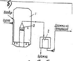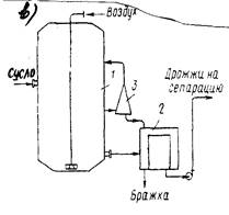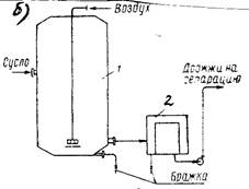 Практически этот вариант работы осуществляется путем возврата части бражки из флотатора в инокулятор (рис. 3,а)