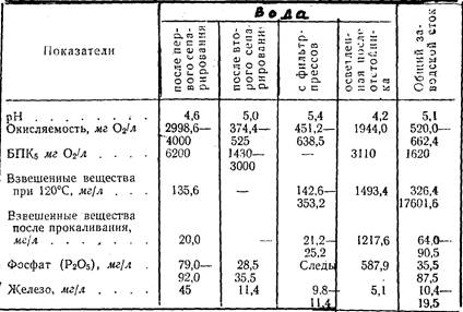 Исследованиями установлено, что основным источником загрязнения сточных вод являются дрожжевая бражка и спиртовая барда. Биологическая потребность в кислороде (БПК5 ) дрожжевой бражка равна 4600—5200 мгО2 /, спиртовой барды — около 6000, т. е. в два-три раза больше, чем для общезаводского стока, для которого БПК5 составляет 1400 -— 1800 мгО2 /л (табл.6)