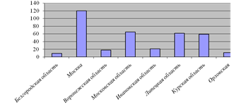 Рис. 1. Количество научно-технических организаций по областям Центрального округа