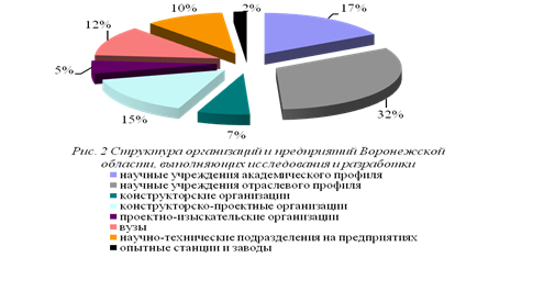 Воронежская область, как и другие регионы России, имеет значительный неиспользованный инновационный потенциал. В настоящее время инновационная деятельность осуществляется преимущественно на промышленных предприятиях, в организациях малого бизнеса, академических научных организациях и вузах.
