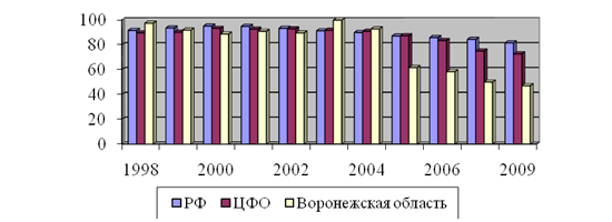 | Воронежская область | 100 | 95, 1 | 31, 2 | 31, 7 | 28, 8 | 24, 4 | 68, 3 | 68, 3 | 67, 5 | 74, 8 | 77, 3 | 64, 7 | 91, 0 |