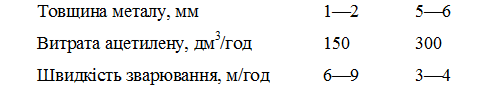 | Витрата ацетилену, дм3 /год | 50 | 75 | 75—100 | 150—300 | 300—500 |