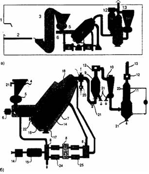После сжигания газообразные продукты горения попадают в электрофильтр 9 и групповой циклон 10, где освобождаются от пыли и направляются в скруббер 11 для окончательной очистки, а затем поступают в дымовую трубу 13 с помощью дымососов 12.
