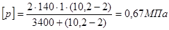 Ρраб=0,6 МПа< [р] =0,67 МПа