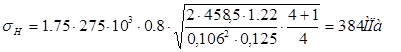 Осевые силы: F фш = 7450 Н, F ок = 3139Н.