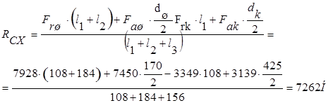 Реакции в опорах: Rсх = 7262 Н, R DX =2683Н,