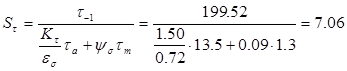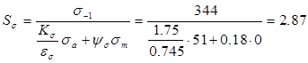 где Ѕσ и Ѕτ – коэффициенты запаса прочности при действии изгиба и кручения.