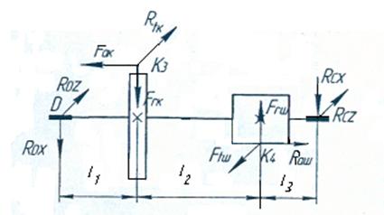 3.5 Определение сил в зацеплении (см. рис. 3.3)