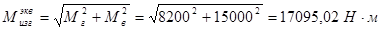 Эквивалентный изгибающий момент горизонтальных и вертикальных сил ищем в месте наибольшего изгибающего момента и найдется из зависимости: