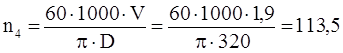 w4 = ×n4 / 30 = 3,1416×113,5 / 30 = 11,9 рад/с.