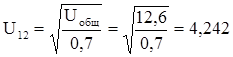 Согласно рекомендациям U34 =0,7U12 , получаем Uобщ =0,7U2 12