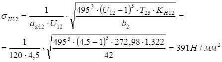промежуточный вал редуктора:n23 = n1 / U12 = 1430 / 4,5 = 317,8 об/мин;