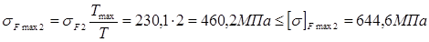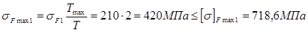 напряжения в рассматриваемом сечении вала при действии максимальных нагрузок: