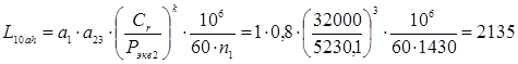 Выбранные подшипники проверены на пригодность по их долговечности из расчета по динамической грузоподъемности.
