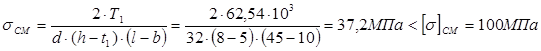 Проверяем шпонку, передающую крутящий момент от вала 2 на звездочку: