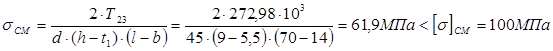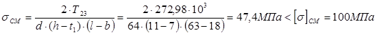 Проверяем шпонку, передающую крутящий момент от колеса 2 на выходной вал: