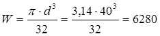 - моменты сопротивления сечения вала при расчете на изгиб и кручение, мм3