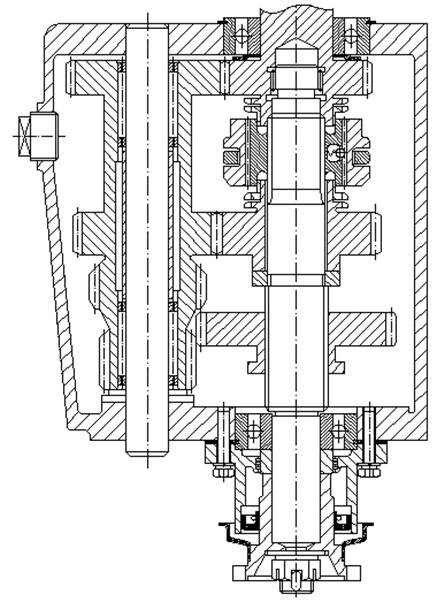 Подшипники нижней и верхней опор установлены в стаканах фиксируемых призонными болтами.