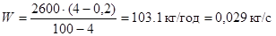 Wост= 2600 – 2594,8 = 5.2 кг/год = 0.001кг/с