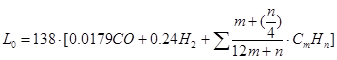 Для спалювання 1 кг цього газу необхідно L0 кг сухого повітря. Розрахунок L0 за наступною формулою: