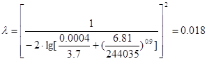 Отже режим руху турбулентний та визначення коефіцієнту тертя можливе за формулою: