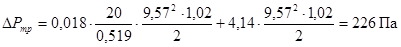 Сумарні втрати тиску у газоході розраховуються по формулі: