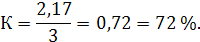 Коэффициент загрузки оборудования, К, %: