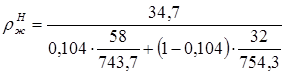 ρW = 0,03 · 740,5 + (1 – 0,03) · 751,9 = 751,6 кг/м3 ,