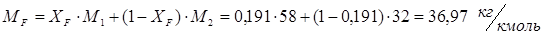 где MA иMБ – молярные массы низкокипящего и высококипящего компонентов, соответственно, кг/кмоль.