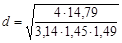 Внутренний диаметр штуцера на выходе пара из верхней части колонны и на входе пара в нижнюю часть колонны: