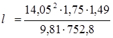ξ – коэффициент сопротивления колпачковых тарелок, принимаем 1,75.