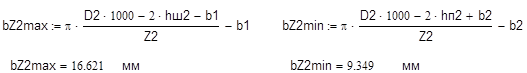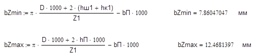 Z1min =pD / tZ1max =p× 0.335 / 0.017 = 61,9;