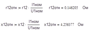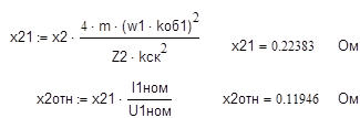 Xm = 4,1× 1,87316 =7,6799 Ом; R1 = 0,014 × 1,87316 = 0,02622 Ом; R2 = 0,014 × 1,87316 = 0,02622 Ом; Х1 = 0,086 × 1,87316 = 0,161 Ом; Х2 = 0,12 × 1,87316 = 0,22478 Ом