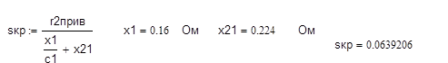 2. Действующее значение тока статора и скольжение: