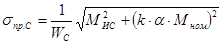 Напряжение на свободном конце вала в сечении C :