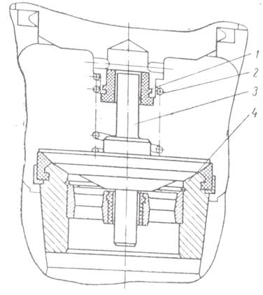 В диафрагменном насосе, схема гидравлической части которого представлена на рис. 1.3, б, всасывание и нагнетание осуществляется изменением формы диафрагмы. Он представляет собой обычный насос одинарного действия, в котором перекачиваемая абразивная жидкость 1 отделена гибкой диафрагмой 2 (прорезиненная нейлоновая ткань) от рабочей жидкости 3.