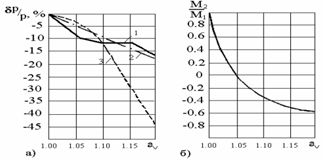 На рис. 1б представлена экспериментальная зависимость отношения крутящих моментов на ведущем и ведомом валках от величины коэффициента асимметрии. Кривая имеет гиперболический вид и пересекает ось абсцисс в точке, соответствующей а v = 1.05 . Этот момент соответствует переходу ведомого валка в генераторный режим при отсутствии ещё полной пробуксовки ведущего валка по металлу.