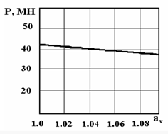 Рис. 3. Зависимость силы прокатки от коэффициента асимметрии, а v , вычисленного по формуле (1)