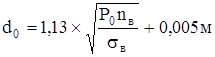 Номинальный диаметр болта определяется по формуле: [2, с. 142]: