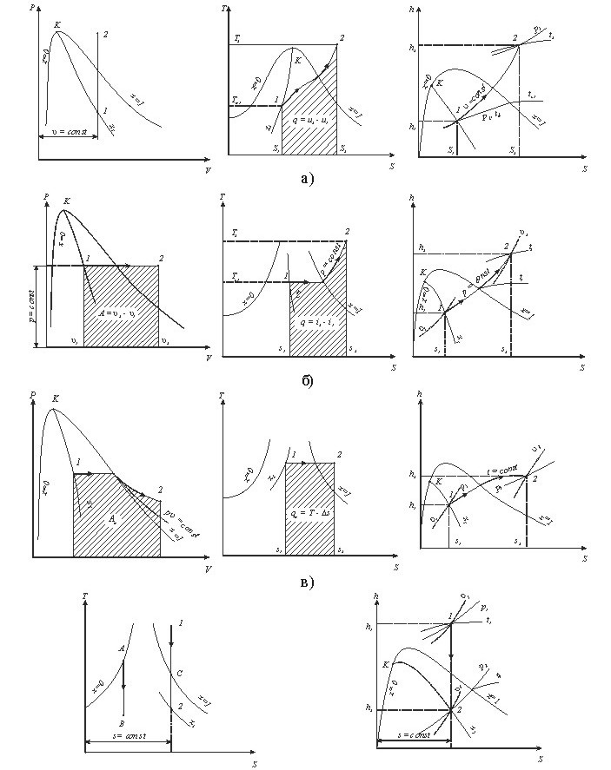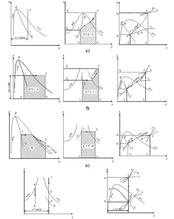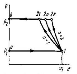 1. PV=const; 2. PVn=const; 3. PVk=const; 4. P=const;