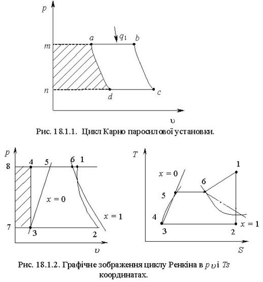 теоретичні цикли паросилових установок, двигунів внутрішнього згорання,