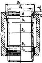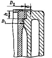В автомобильных и тракторных дизелях применяют мокрые гильзы, отливаемые из чугуна, с верхним опорным фланцем (см. рис. 1.1, а, б и рис. 1.2). Опорная площадь фланца, ограниченная диаметрами D 1 и D 2 , составляет 8–15% площади поршня. При этом давление от сил затяжки шпилек, крепящих головку цилиндра к блоку, на кольцевой поверхности ( Dt – D 2 ) не должно превышать 380–420 МПа для чугунных и 140–180 МПа для алюминиевых блоков. С увеличением разности D 2 – D 1 повышается напряжение изгиба в верхнем поясе. Высота h фланца составляет 7–10% диаметра цилиндра D .