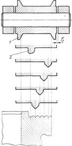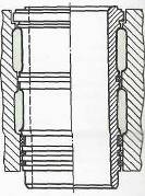 В переводе с латинского языка слово «кавитация» означает пустота. В потоке охлаждающей жидкости при вибрации гильз цилиндров образуются пузырьки воздуха (пустоты), которые под действием высокого давления разрушаются (замыкаются) с выделением большой энергии. Внешняя поверхность гильзы цилиндра, а также часть блока цилиндров, где замыкаются кавитационные пузырьки системы охлаждения, подвергаются разрушению. Для предотвращения кавитационного разрушения в гильзах двигателей (например, ЯМЗ-236 и ЯМЗ-238) протачивают специальную канавку, в которую вставляют антикавитационное кольцо прямоугольного сечения (рис. 2.2).