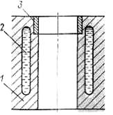 1 – блок цилиндров; 2 – водяная рубашка; 3 – вставка