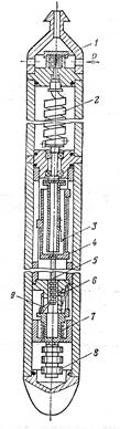 2. Прибор (снаряд) эксплуатируется в измеряемой, среде и подвергается действию окружающего давления, температуры и коррозионных жидкостей. В связи с увеличением глубин бурения, а также с необходимостью контроля различных процессов по интенсификации добычи нефти и газа, давление окружающей среды может достигать 1000—1500 кг×с/см2 , а температура до 300—400° С.
