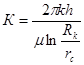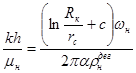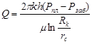 R k =200 м, rc = 0,124 м; при перфорации для 10 отверстий на 1 м c1 = c = 10.